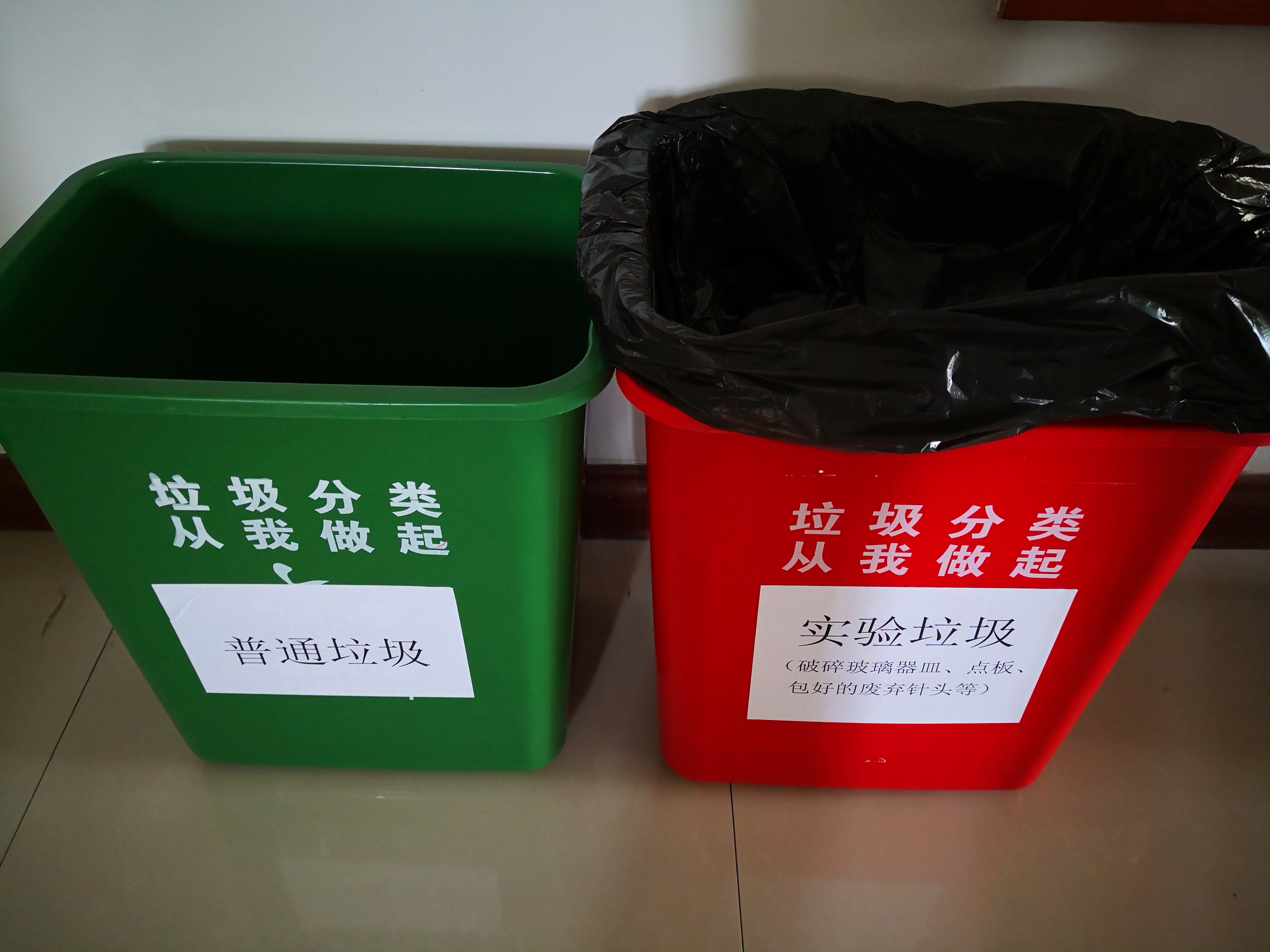 (三)整改措施与结果:公共实验室已购买分类垃圾桶,并标注类别。