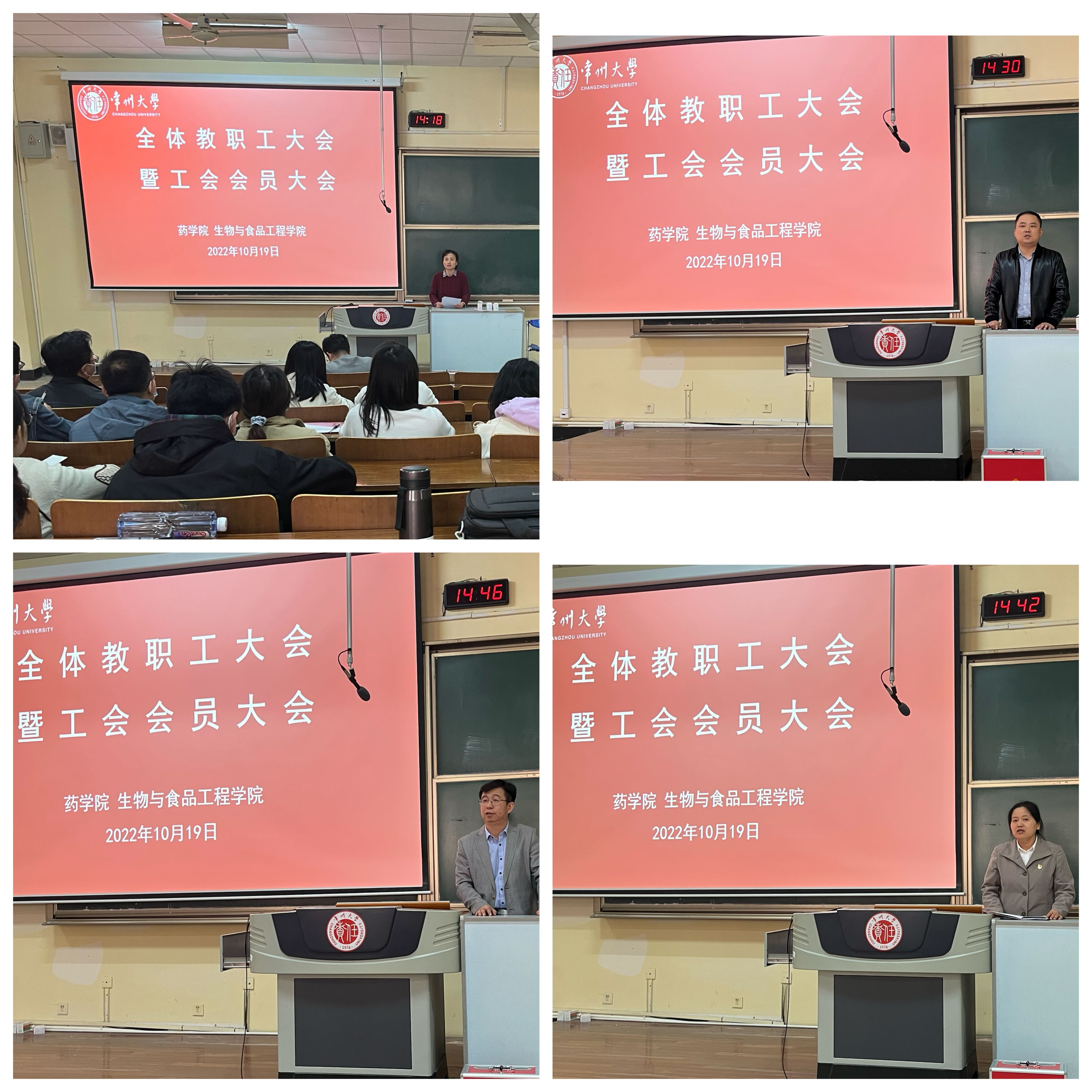 10月19日下午,js33333金沙线路检测 生物与食品工程学院在W6阶召开全体教职工大会暨工会会员大会。学院党政领导班子成员和全体工会会员参加大会,会议由党委书记王利群主持。