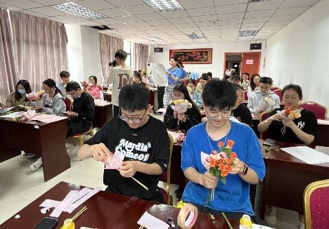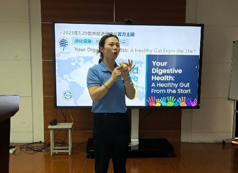 在2023中国全民营养周和5.29世界肠道健康日来临之际,学院分工会联合食品质量与安全系于5月16日开展健康主题活动,邀请了无锡养乐多公司的专业人士为学院师生科普知识,主要介绍了人体必要营养成分、肠道重要功能、平衡肠内菌群的方法、膳食均衡搭配的方法等方面的知识。活动现场,师生们还兴致勃勃地为自己制作了鲜花花束。