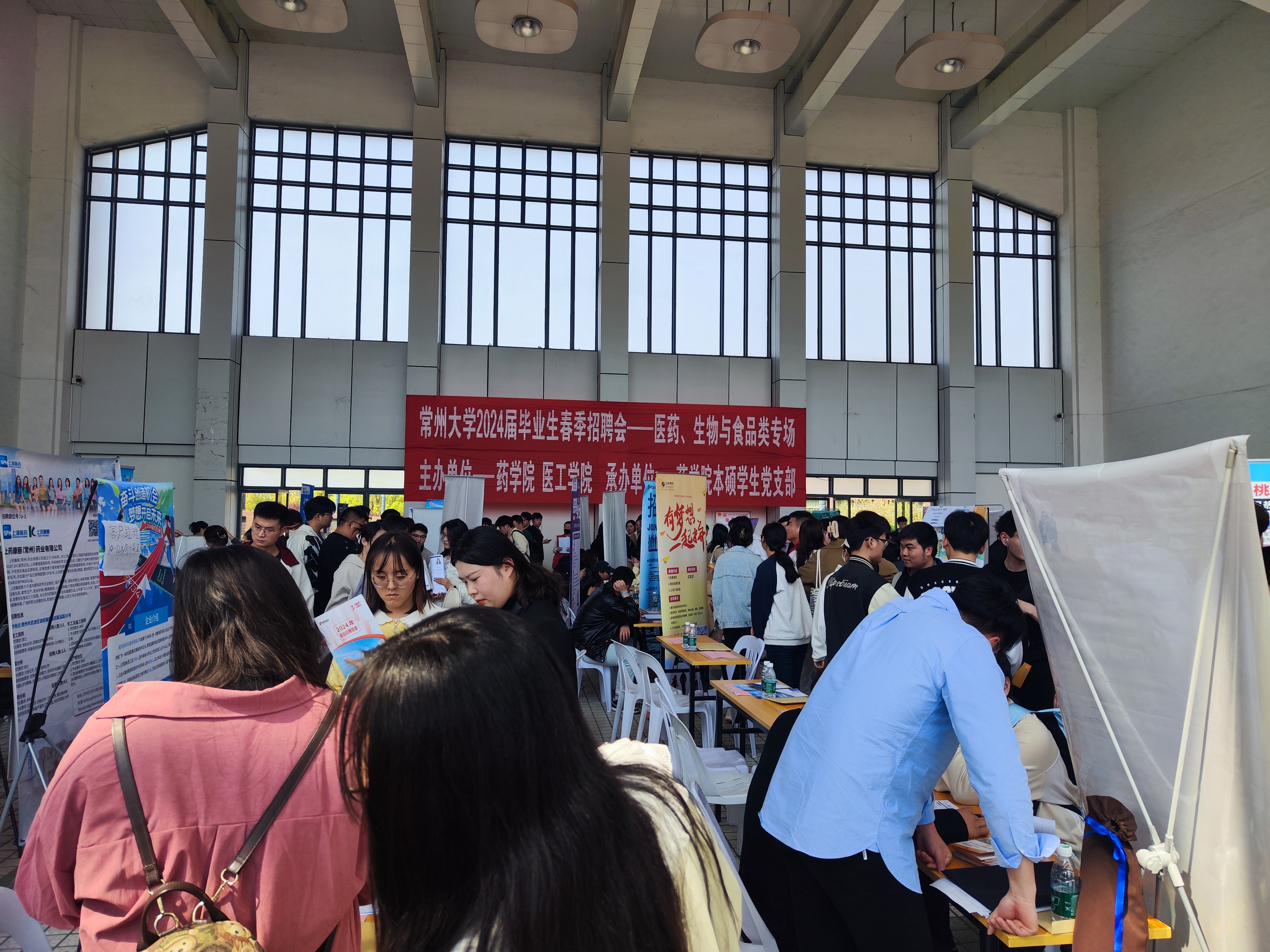 为深入学习贯彻习近平新时代中国特色社会主义思想和党的二十大精神,全面落实党中央、国务院对高校毕业生就业工作的决策部署,全力做好未就业毕业生群体的就业工作,搭建毕业生校园求职平台,金沙官网特联合医学与健康工程学院,于4月10日下午,在科教城校区主楼平台二楼举办“常州大学2024届毕业生春季招聘会——医药、生物与食品专场”,招聘会由金沙官网学生党支部承办,学校和学院领导以及学院学工办全体老师到场与用人单位沟通交流、为学生现场指导,我校相关专业毕业生踊跃参与。